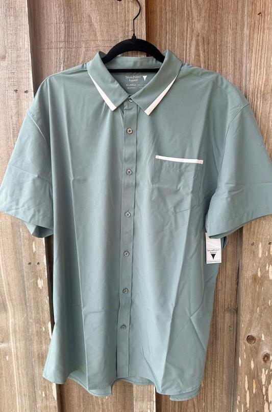 SpearPoint Collared Smooth Short Sleeve Button-Up Top
