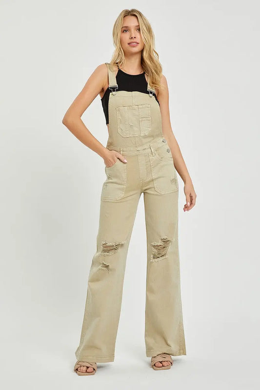 Risen Jeans Front Patch Pocket Wide Leg Overalls