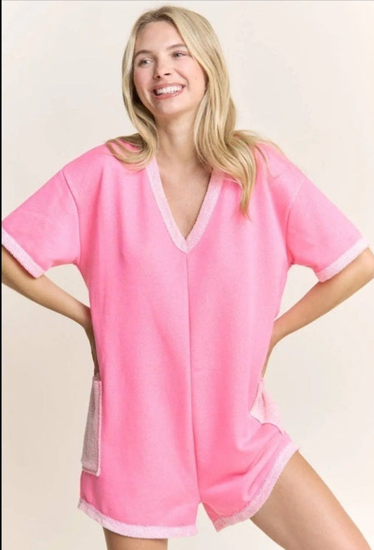 J Her Warm Colored Cozy Loop Terry Romper, Fuschia