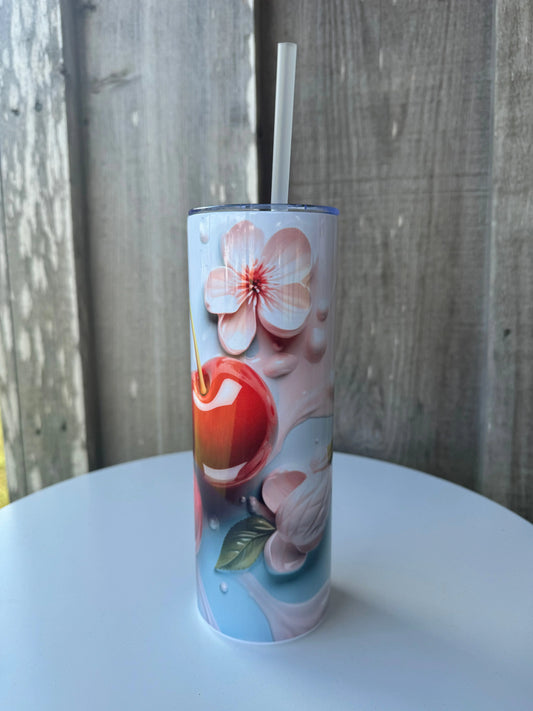20oz Stainless Steel Skinny Cherry With Bow Tumbler With Lid/Straw