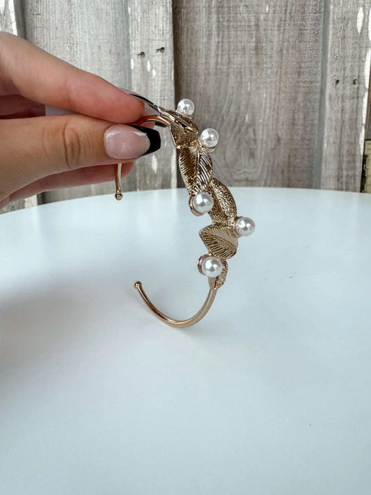 Everyday Wear Leaf Shape Metal Cuff Bracelet With Pearl