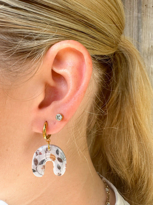 Ruby Clay Lightweight Handcrafted Beige & Black Dangle Earrings