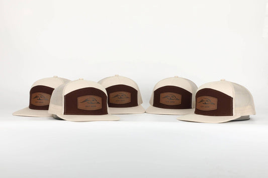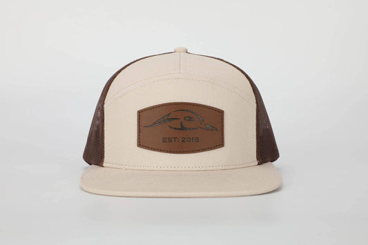 American Flyway Waterfowl Leather Patch Pale Khaki & Brown 7 Panel Trucker