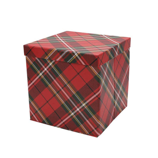 Reusable 9"x9"x9" Collapsable Holiday Gift Box w/ Removable Lid|Plaid