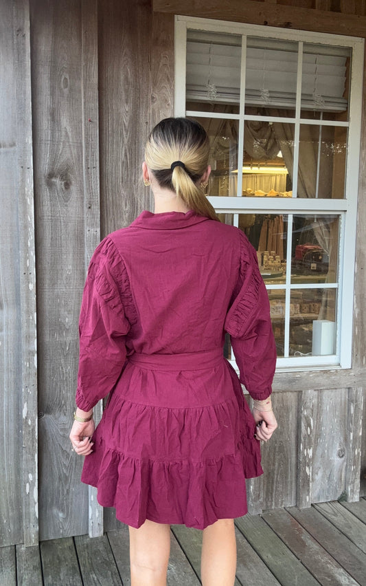 Day + Moon Collared Zip-up Mini Dress W/ Belt & Tiered Skirt