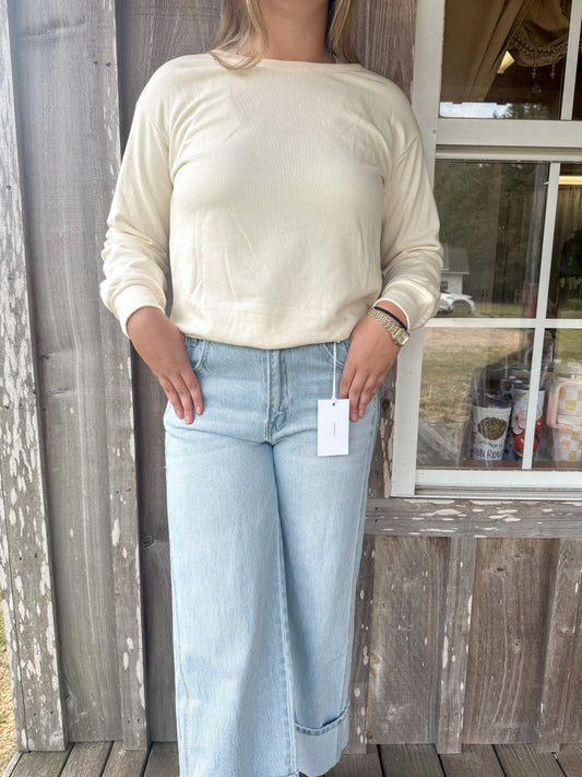 SUPER HIGH RISE CUFFED BAGGY WIDE JEANS STREAMLINED