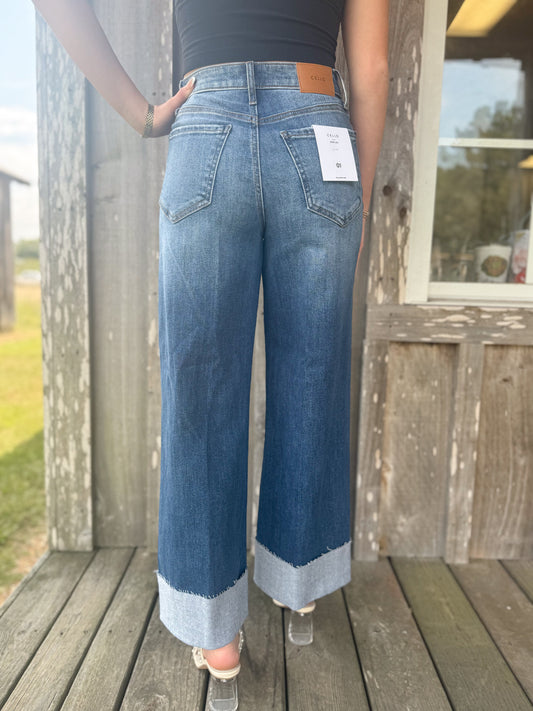 Cello Jeans Medium Wash High Rise Crop Wide Leg With Cuff Jeans