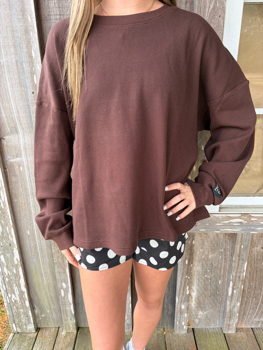 Lulu Mac Waffle Knit Brown Long Sleeve Top