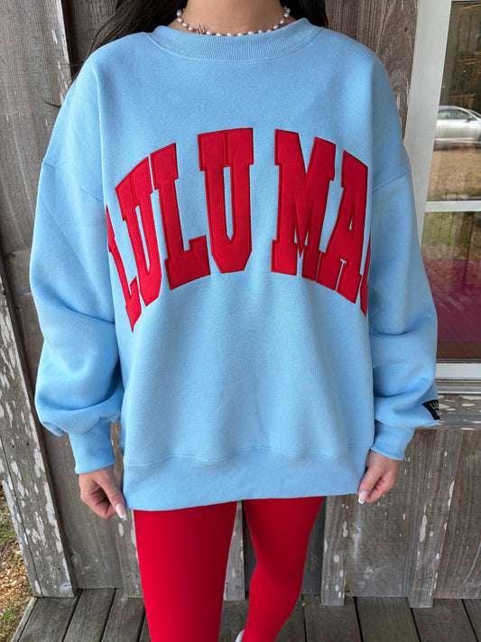 Lulu Mac Light Blue Red Stitch Puff Sweatshirt
