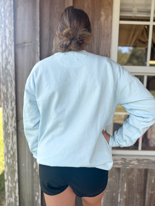 Christmas Bow Birth of Jesus Light Blue Sweatshirt