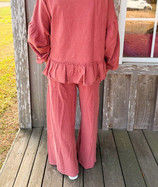 Peach Love California Washed French Terry Wide Fit Track Pants