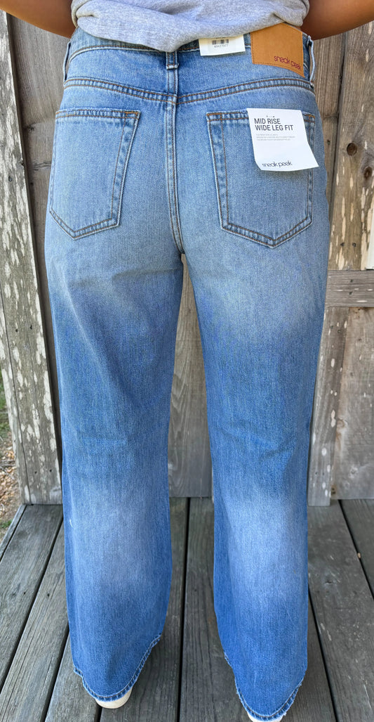 Sneak Peek Mid Rise Wide Straight Leg Distressed Medium Jeans
