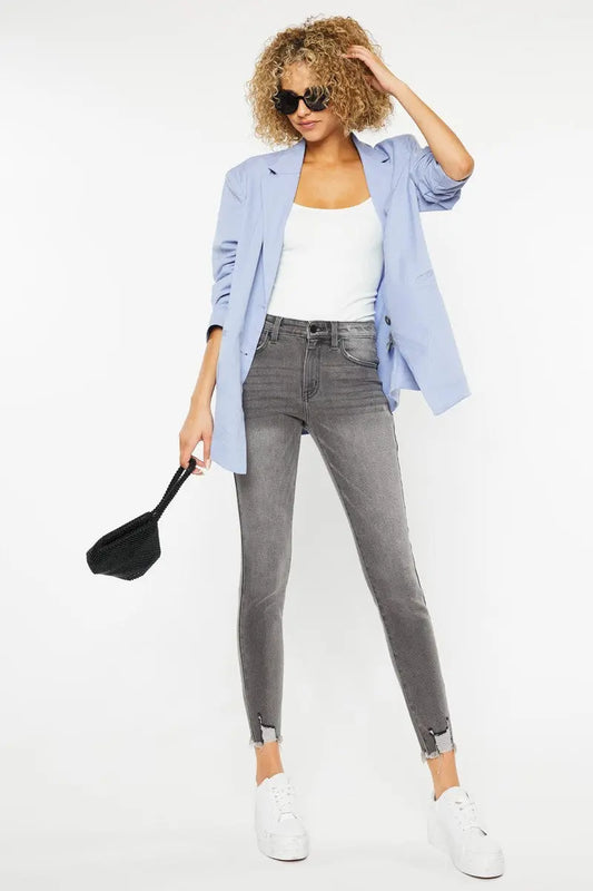 Kan Can High Rise Hem Detail Ankle Skinny Distress Jeans