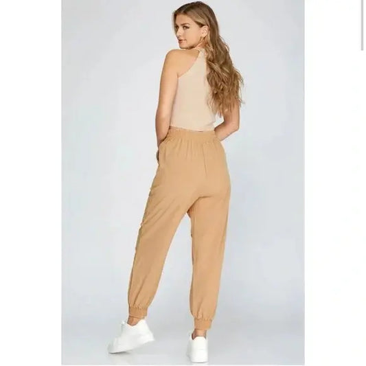 She + Sky Light Weight Stretch Woven Jogger With Pleaded Front Knee Detail