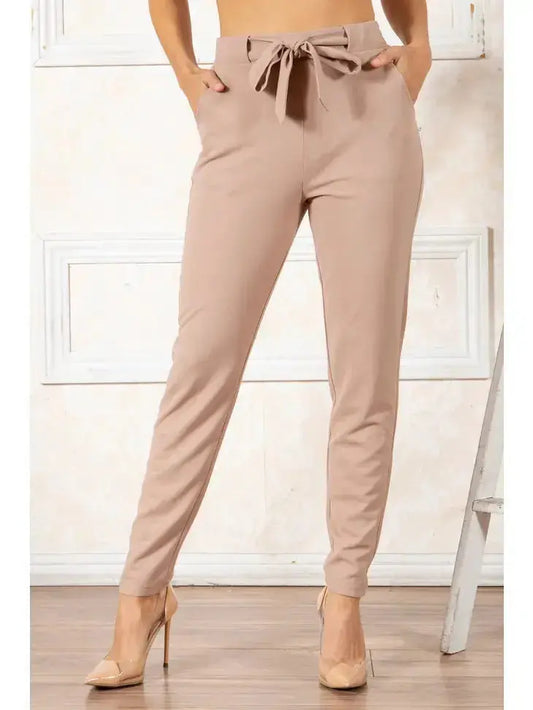 Womens Paperbag Waist Skinny Tie Dress Pants