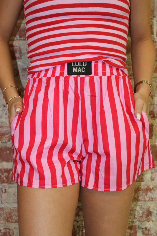 Lulu Mac Red With Pink Striped Boxer Short