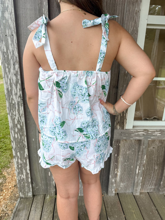8 Oak Lane Hydrangea Ribbons Tie Top Ruffle Sleep Set