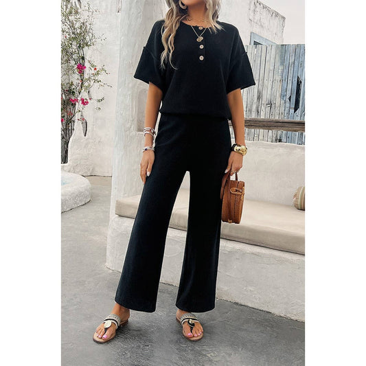 Oversize Banded Top and LoopTerry Pocket Short Set-Oatmeal