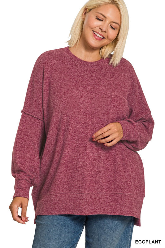 ZENANA PLUS Brushed Meglange Drop Shoulder Sweater Top