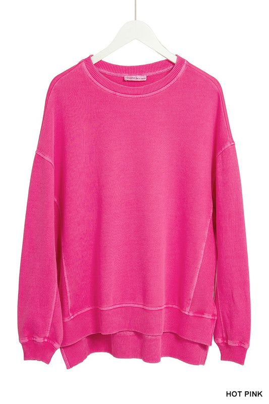 ZENANA Lt Mocha Washed Side Slit Oversized Cropped Sweater