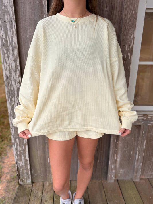 Lulu Mac Waffle Knit Butter Long Sleeve Top