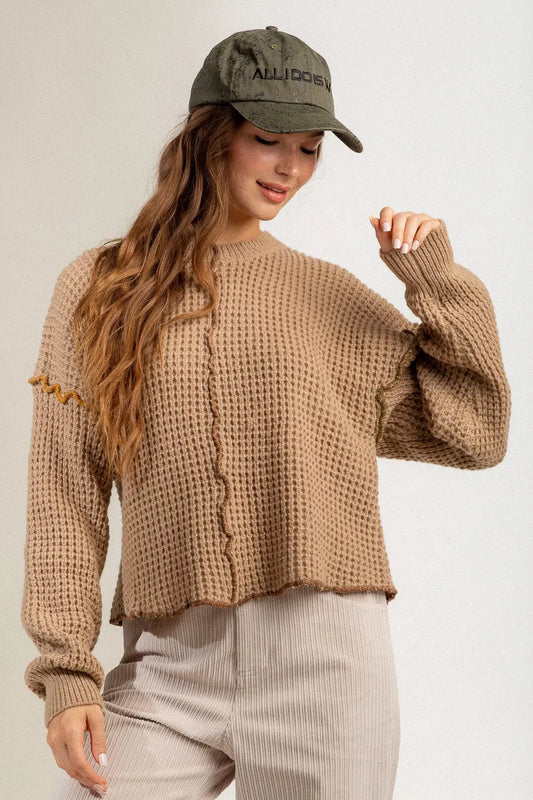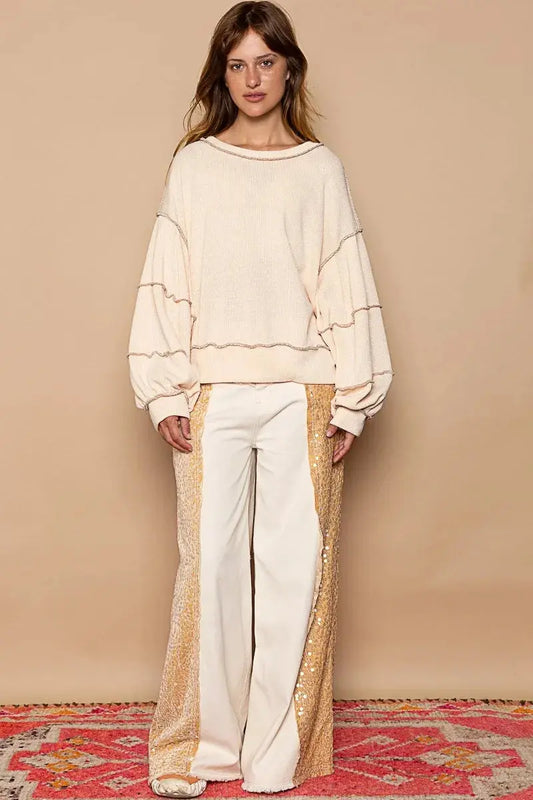 Cut Sew Sweater Knit Exposed Seam Sweatshirt