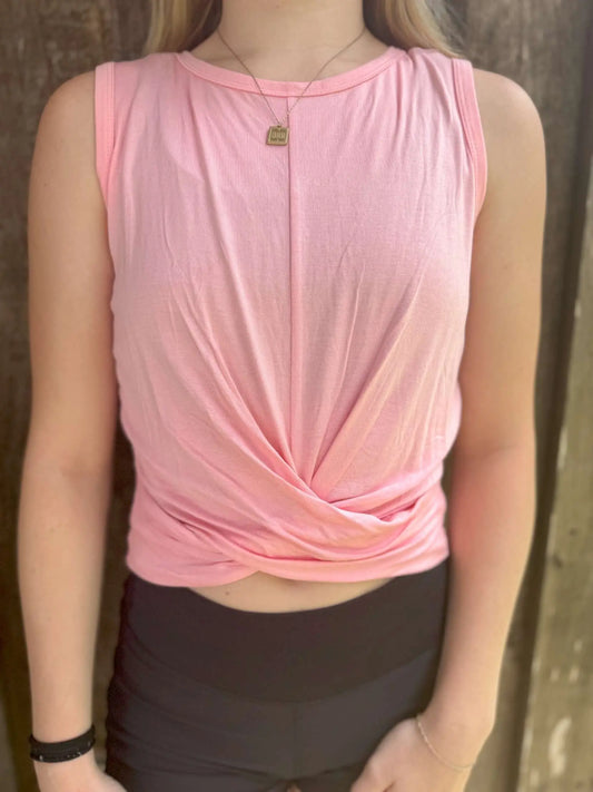 Zenana Luxe Rayon Twist Front Sleeveless Crop Top