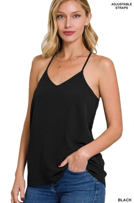 Woven Airflow Adjustable Strap V Neck Cami Top