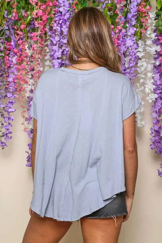 Peach Love California Heather Grey Loose-Fit Knit Top with V-neck