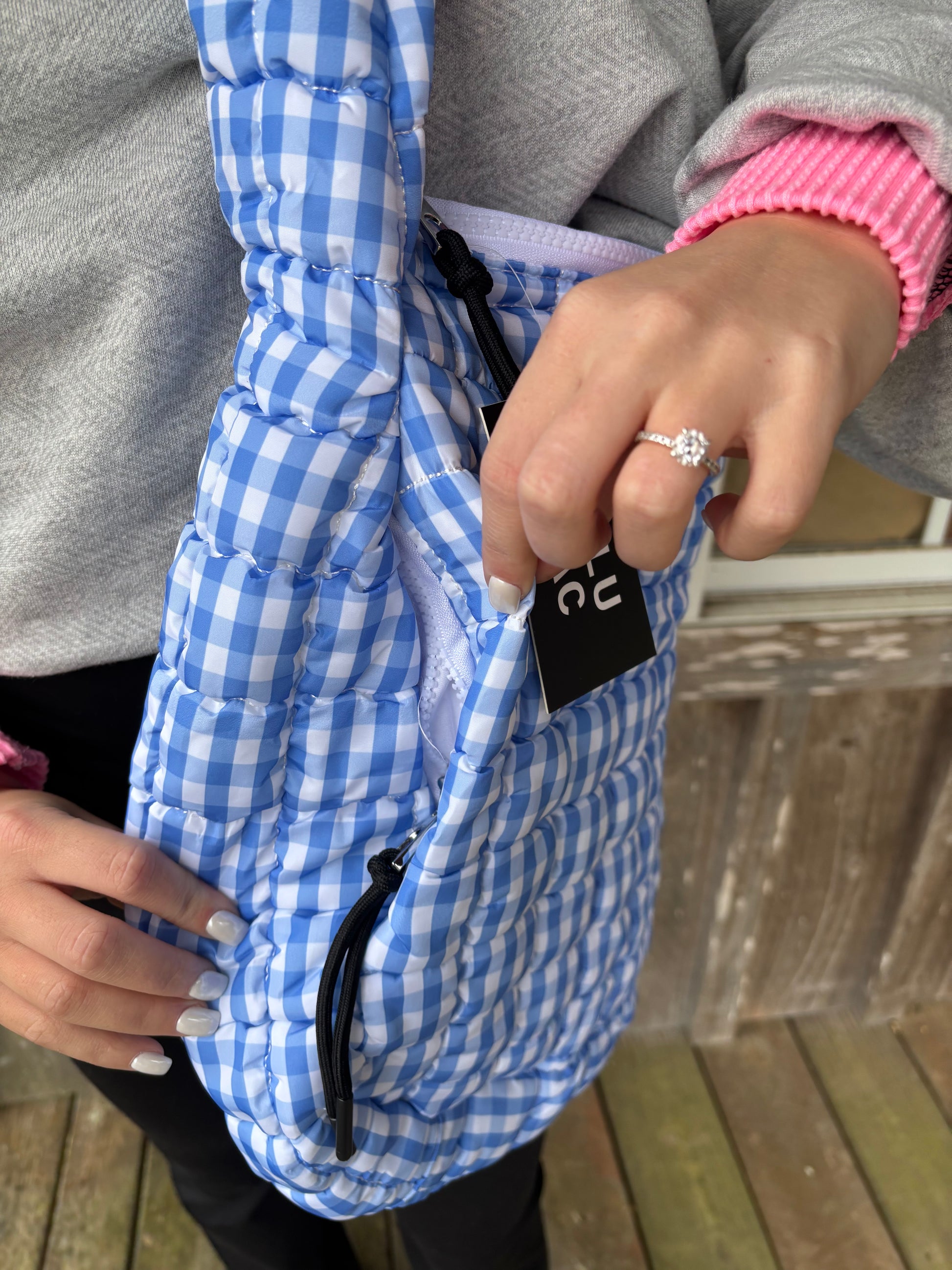 Lulu Mac Light Blue White Gingham Puffer Quilted Handbag