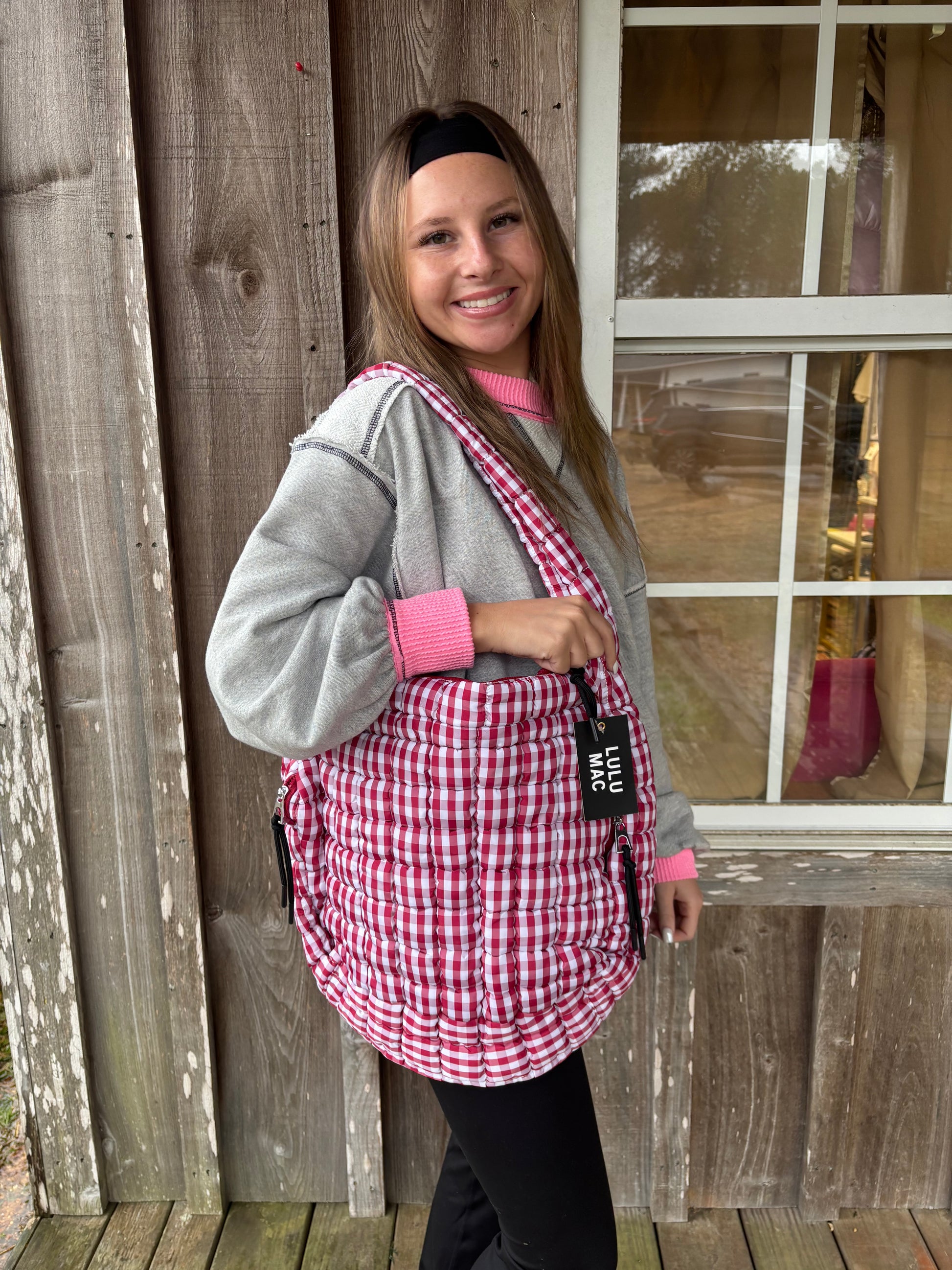 Lulu Mac Red And White Gingham Puffer Quilted Handbag